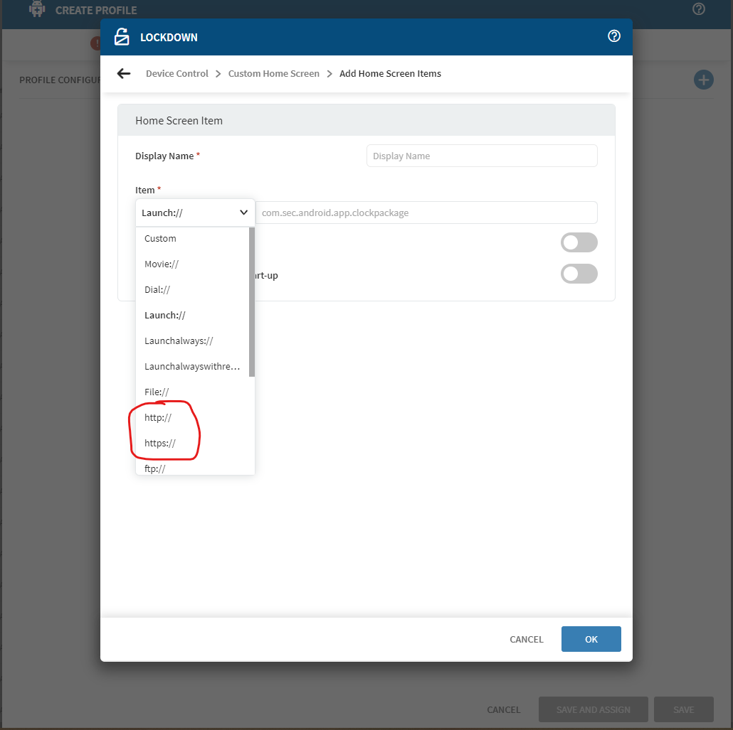 I'm using MobiControl Cloud version 15.3.3.1065 to manage Zebra TC21 devices running Android 10. Chrome is the only browser installed. I need to open specific web sites in Chrome from the lockdown menu. I discovered that browser:// and browsers:// do not work unless I add Launch://com.android.chrome to the lockdown menu. Using an intent to open the web site in Chrome also does not work unless Launch://com.android.chrome is added to the lockdown menu.