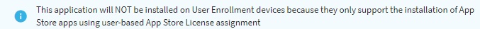 I can see both apps in the provided webclip for Application catalog (https://serveraddress/mc/mdm/appcatalog/%DeviceIdentifier%) but if i press on "install", for both i get the error message "App can't be installed. Please contact your Administrator."