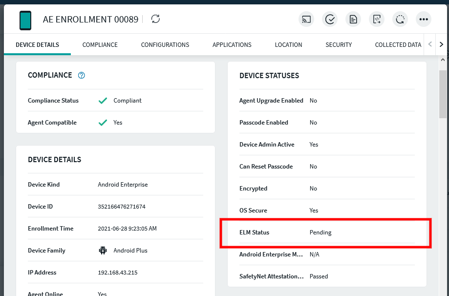 I have a problem when enrolling a Samsung A02 device, I have tried to enroll using the AFW and QR CODE methods but the results are still the same, namely ELM status pending, I have tried sending the reset_elm_license script but it doesn't work, Is there another way to solve this problem?