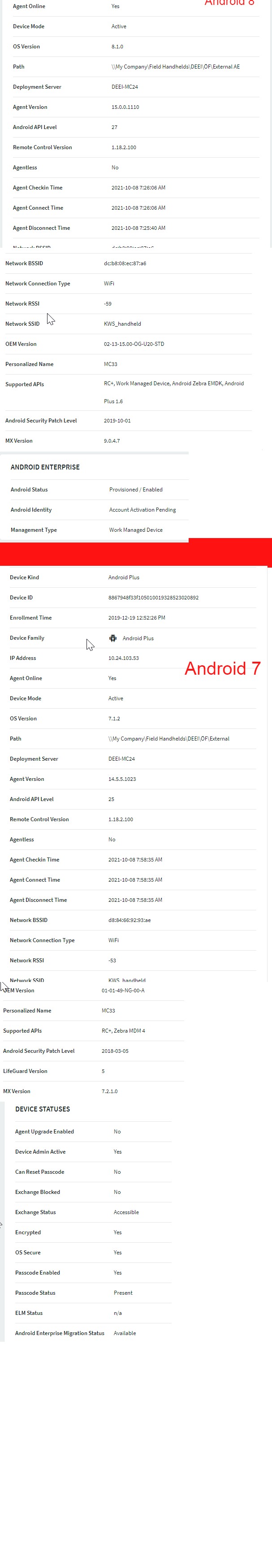 Previously, these were delivered with Android 8, but in the past there were problems with the connection to Soti. For this reason, a downgrade to Android 7.1.2 was made at that time before installation.
