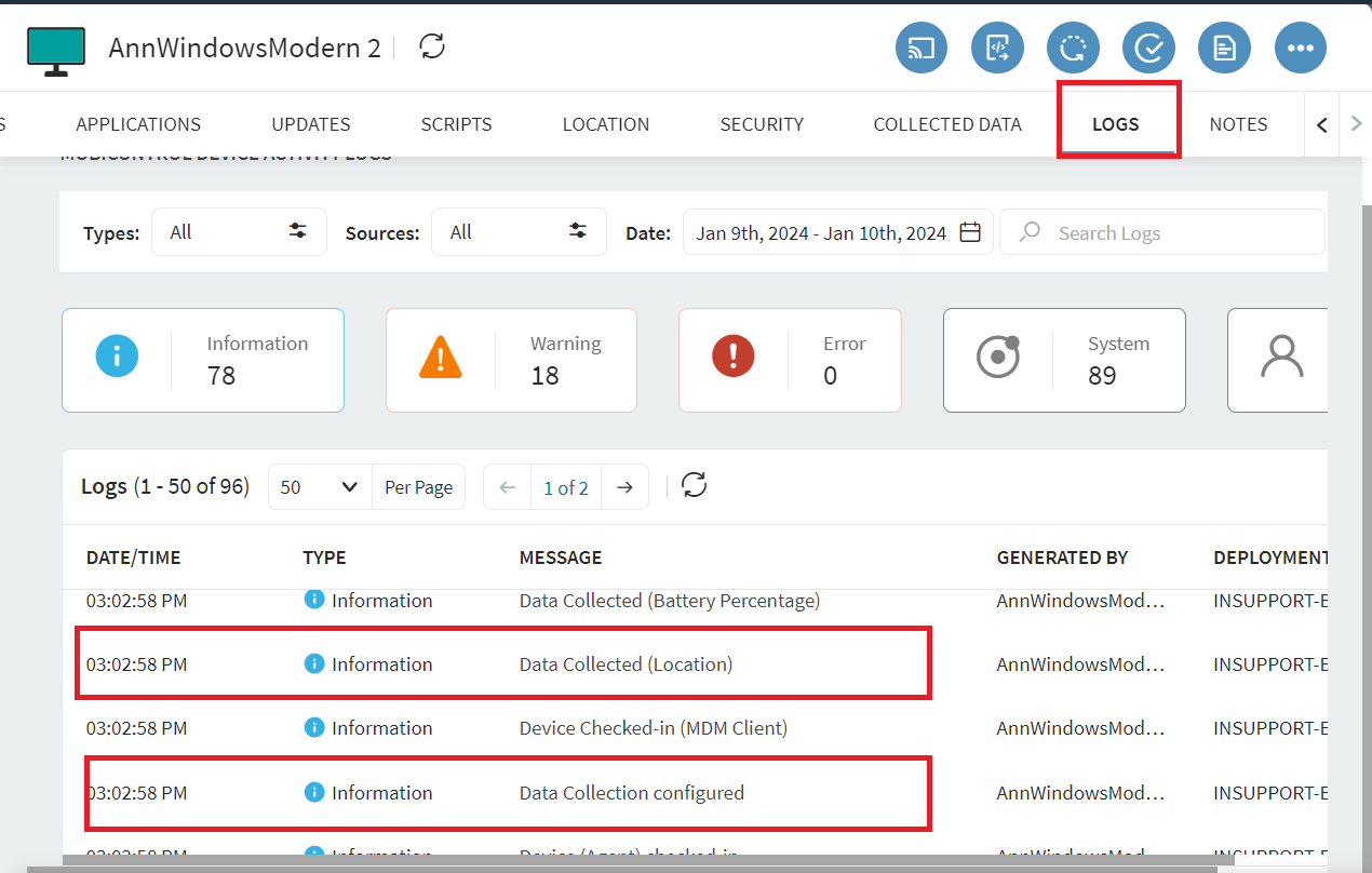 Ensure the device's location service is turned on. For further insights, refer to the Logs section, where you can review the collected data logs to confirm its proper functionality.