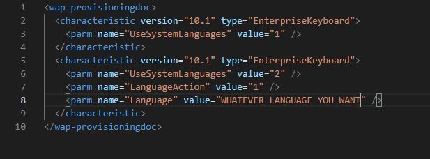 I have to set with the help of MobiControl to get the same result as doing manually with system->language->virtual keyboard->not use system language->set required language.