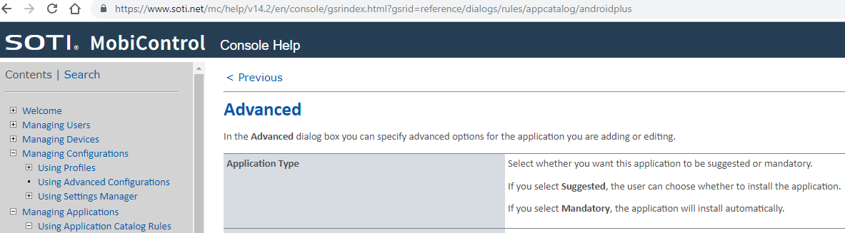 Yes. That was true for previous versions and it was IMHO one of most pointless option. And according to https://www.soti.net/mc/help/v14.2/en/console/gsrindex.html?gsrid=reference/dialogs/rules/appcatalog/androidplus/appcatalog_addedit_advanced_androidplus.html it should finally install automatically as I would expect for long time