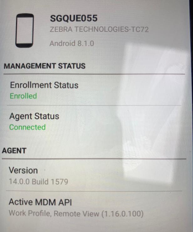 I create a new agent to my device Zebra TC720L Android 8.1, Im using the android fo work option (downloaded from play store) because the server version is not compatible with the device. I can installed and configure it but when I tried to remote control I just have the option.