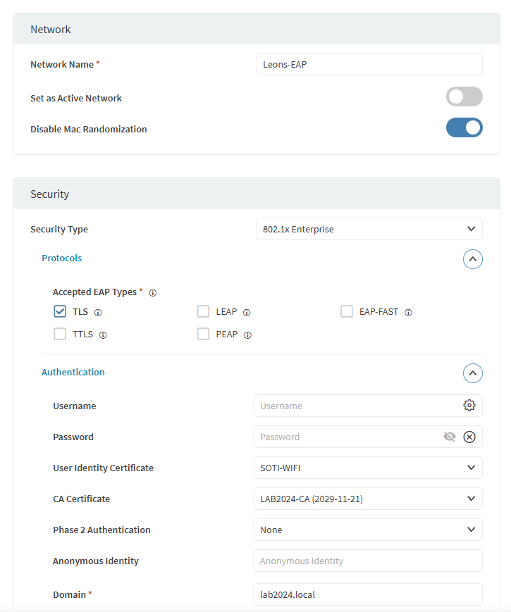 My devices are not logging in to my 802.1x EAP-TLS SSID it is only "saved" under wifi configuration.