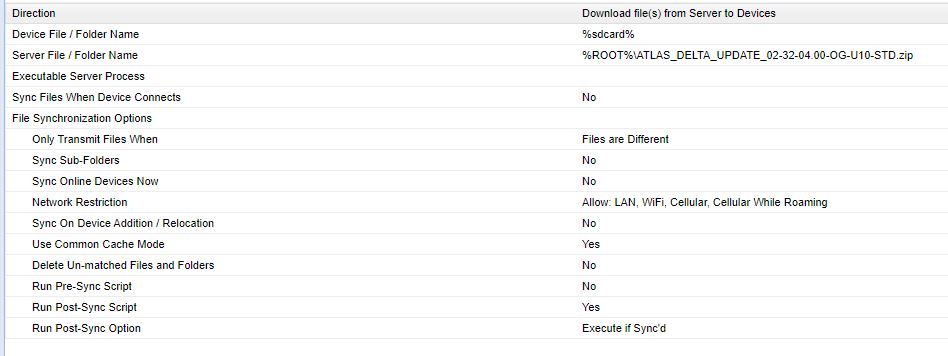 could you please help me. I just setup on my test server file sync where I would like to copy lifeguard update to Zebra MC33 and run it with post script.