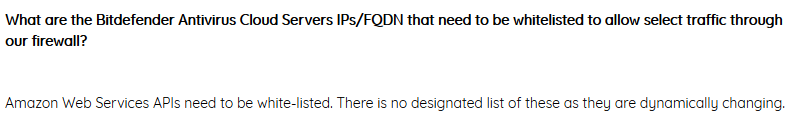 I dont really know if this needs to be handled like this , as for security reasons we wont whitelist the whole AWS APIs just to have bitdefender working.