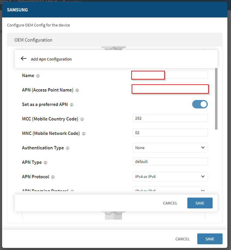 I need to configure the APN settings for Samsung Tab Active 3 devices.