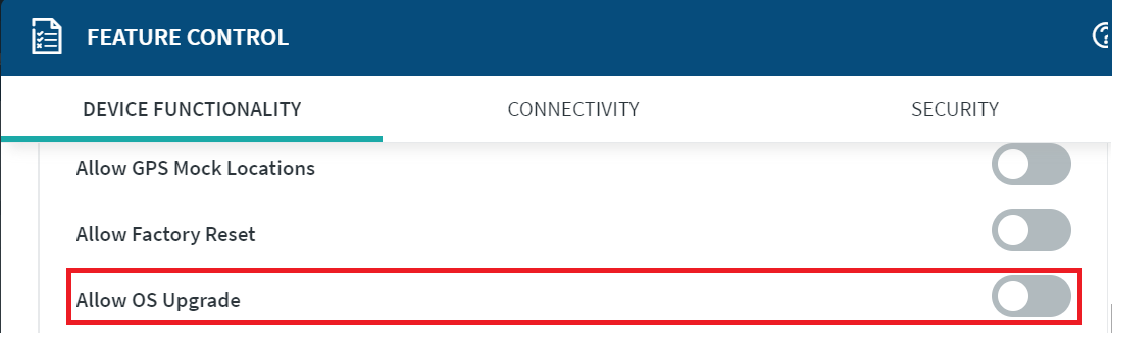 For Android Classic devices disabling Allow OS Upgrade restriction in Feature Control profile will help you to block the Android updates.