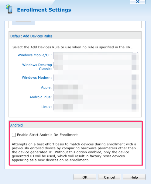 I have a problem when I re-enroll Android devices that have been sent to Zebra for repair.