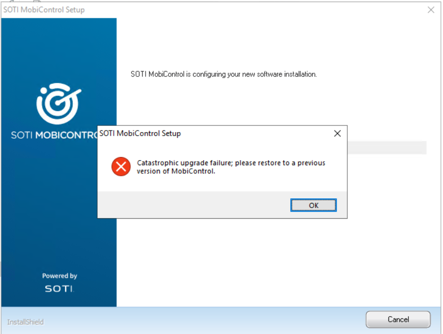 When trying to install a new on-prem server with MobiControl 15.4.1 Build 4828 on a Microsoft Server 2019, where the DB is located on a separate Server 2016 with SQL Server 2016 SP3 we face an error during the installation phase.
