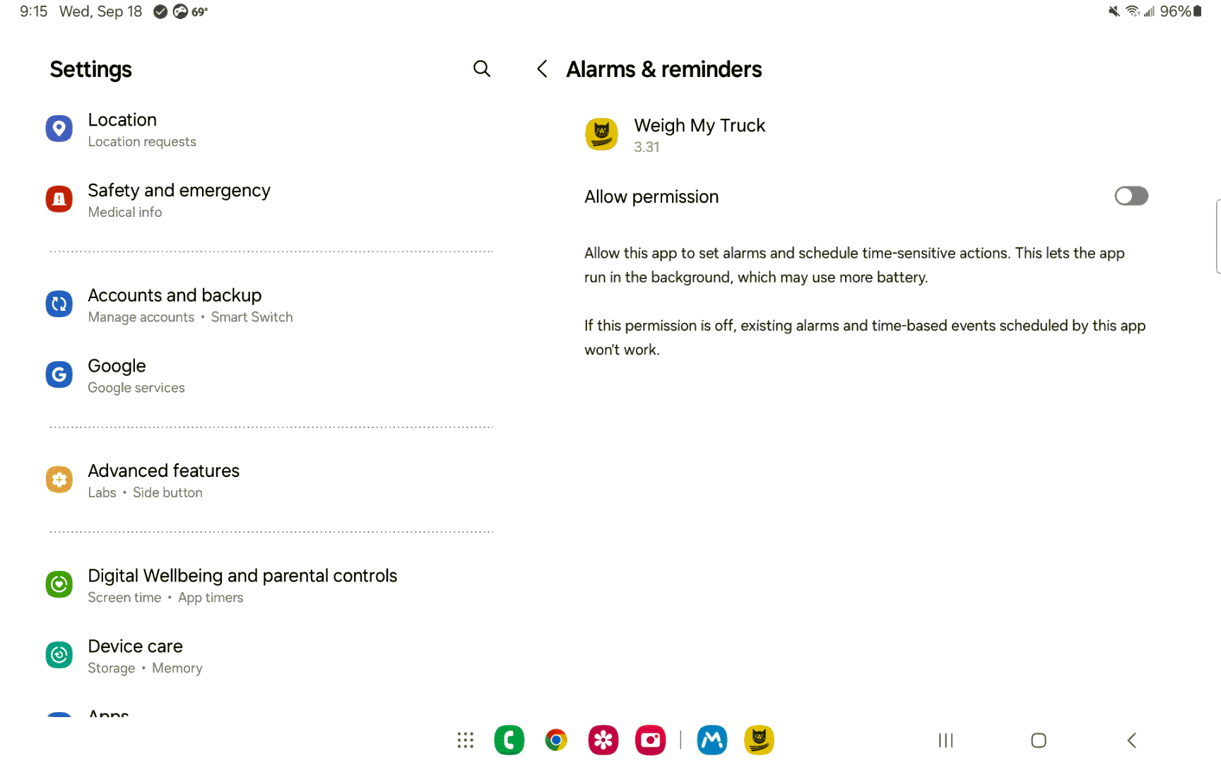 For example, if your devices are from Samsung running Android 13 (Knox 3.9) or higher enrolled in AE work-managed mode, you should be able to use "Permission Control" feature of the free Samsung Knox Service Plugin v24.03+ app to grant "Alarm & Reminders" special permissions for your selected app(s).