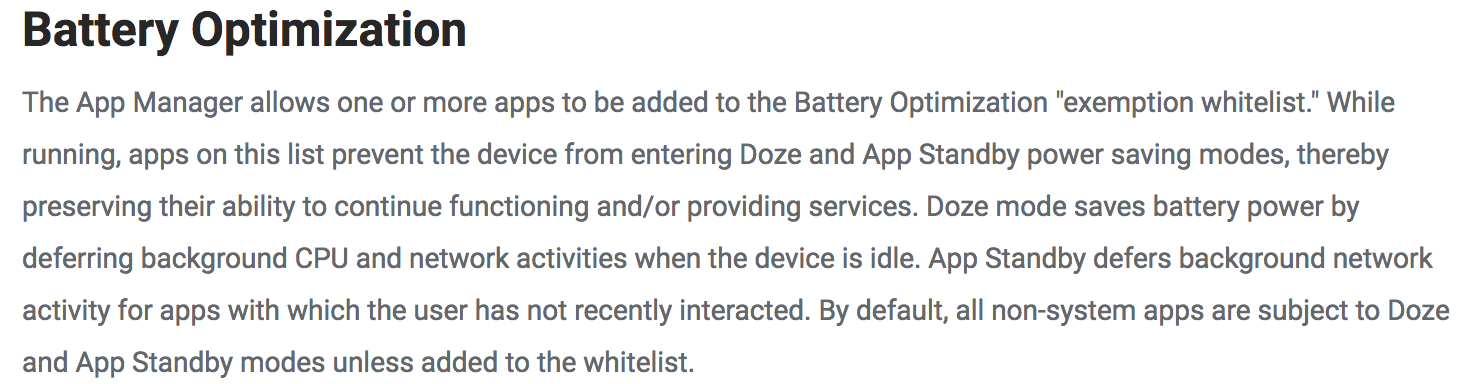 Looks to be a Zebra Android device so you can use the Battery Optimization feature of the AppMgr MX BSP.