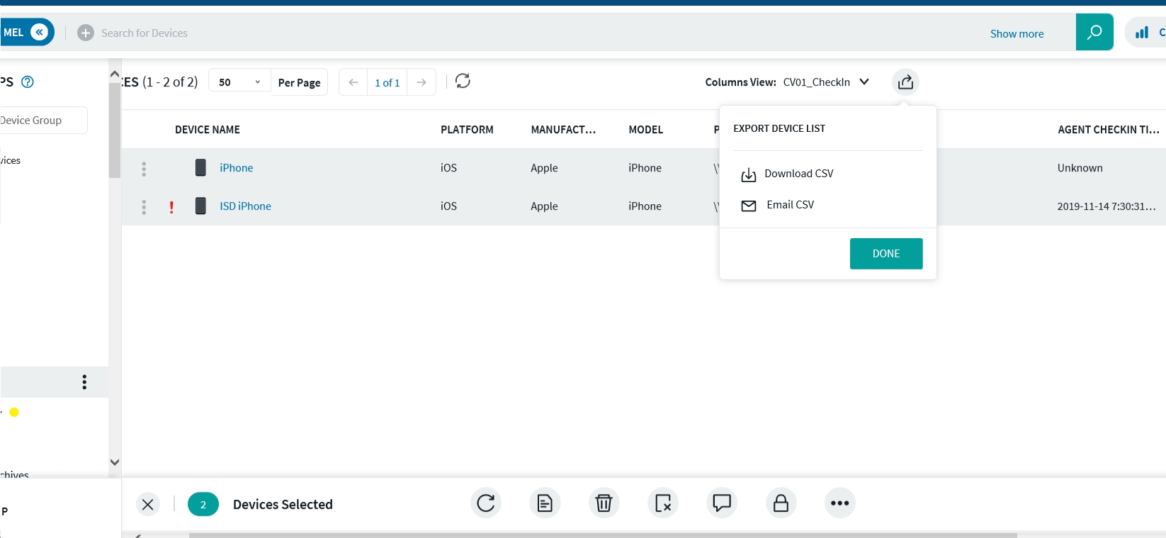 To customize your report, you can customize what data fields to include from the "column view" settings, and use suitable criteria in the advanced device search filter at the top to define what devices you want to be included in your CSV format report.