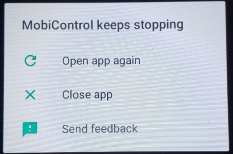 All of the sudden we have 10+ devices that say MobiControl Keeps stopping and will not let the users use their devices.  These devices are setup with Lock Screens (kiosk) and nothing has changed in months.