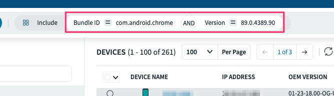 Note I'm searching for Chrome instead of the Android System WebView as Chrome IS the WebView implementation on GMS Zebra devices unless you've blacklisted or manually updated Chrome outside of the Play store. You can verify what the WebView Implementation is on your devices in Developer Options if you're not sure