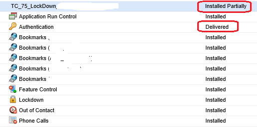 bookmarks / feature control / lockdown / out of contact /phone call / application run control ALL these options are on statut Installed