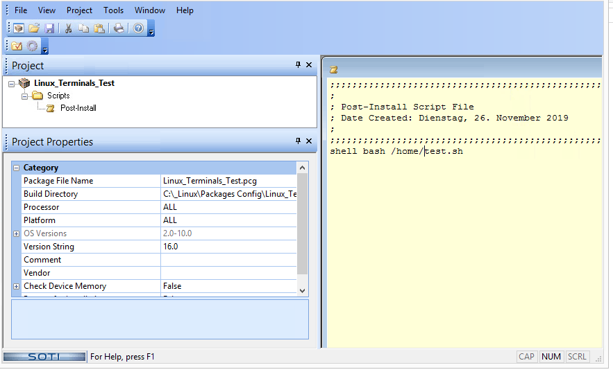 Test 2: PostInstall-Script (mkdir /home/SOTIinstallscriptTest/)