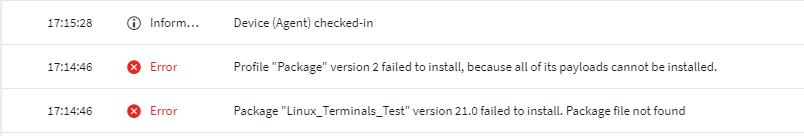 Error: Profile "Package" version 3 failed to install, because all of its payloads cannot be installed. Error: Package "Test" version 3.0 failed to install. Package file not found