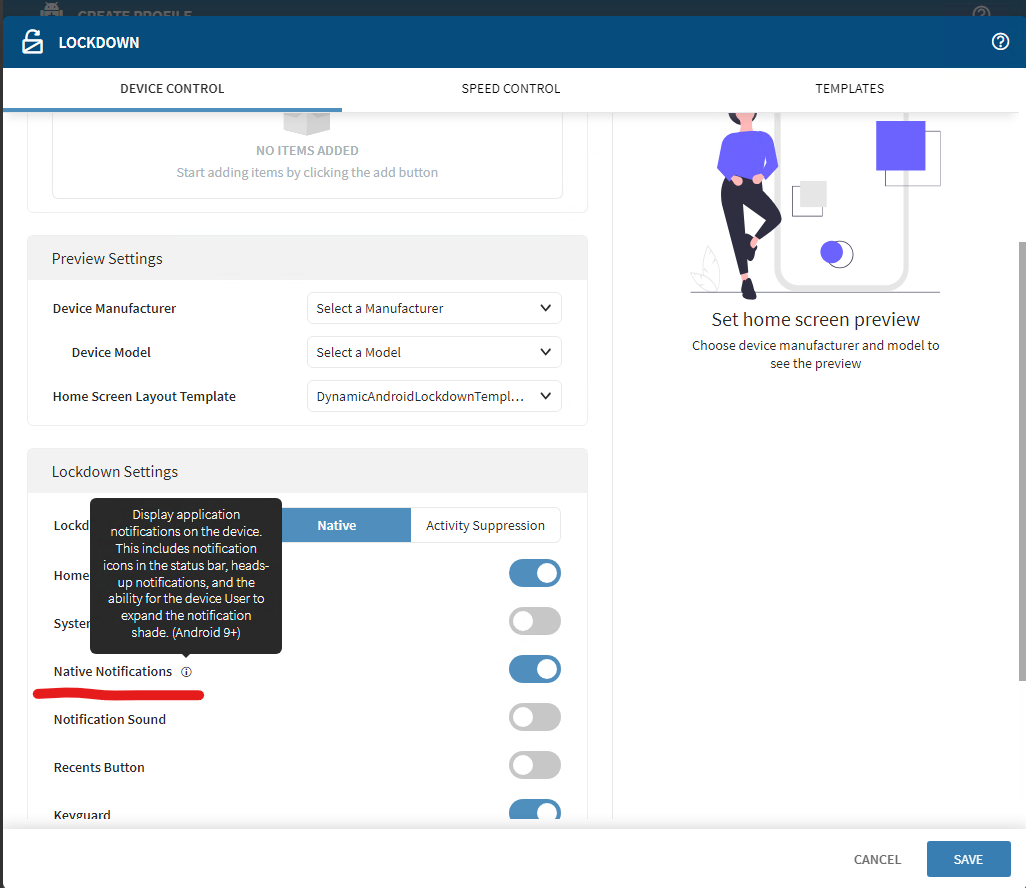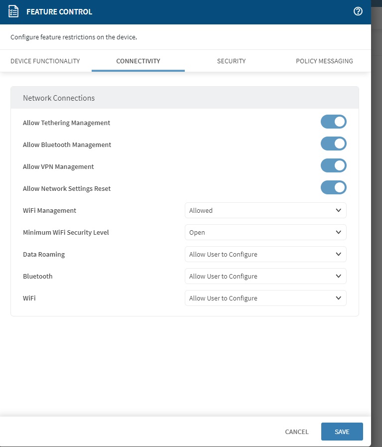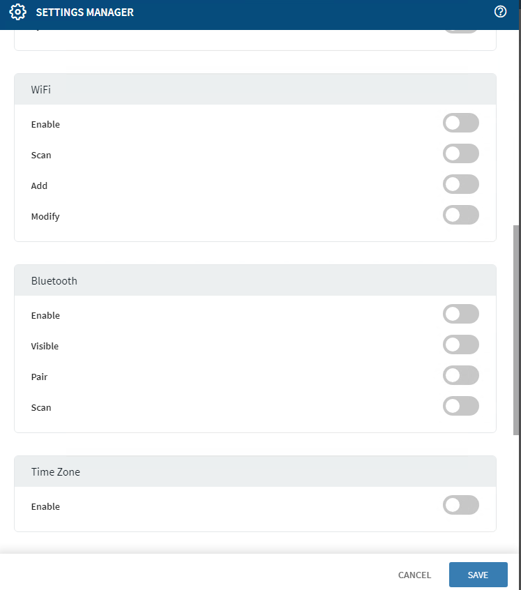 Hello, im trying to have acces to bluetooth settings and expand the status bar and access to settings shortcuts in a TC57 with soti lockdown activated, enrolled in work mode in a 15.5 Mobicontrol server.