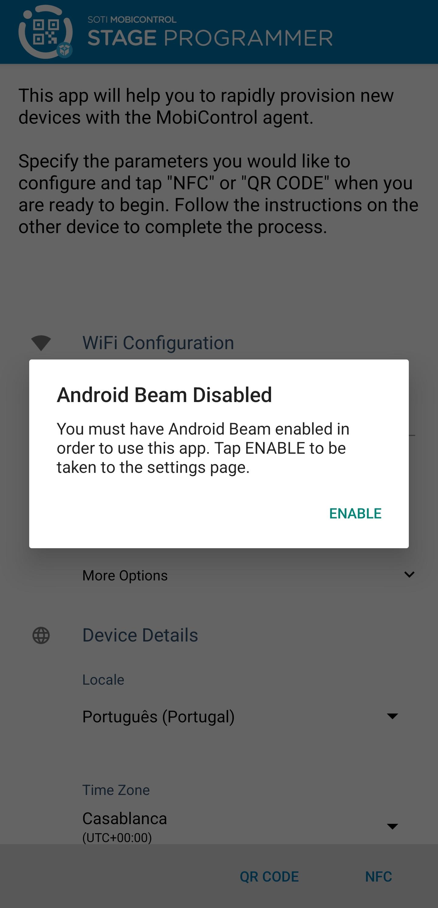I try to use the MobiControl Stage Programmer app with NFC but this app only works on older version of Android - newer version doesn't have Android Beam.