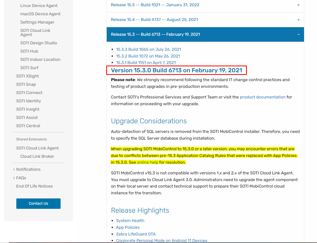 We are on Mobicontrol 15.5.1 since few month.