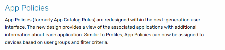 I saw that App Catalog becam App policies since 15.3 (if i'm correct)