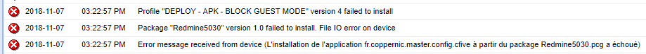 If you failed to install the manually copied apk file directly (i.e. not with MobiControl pcg) on one device, then you can narrow down the actual cause(s) as follows: