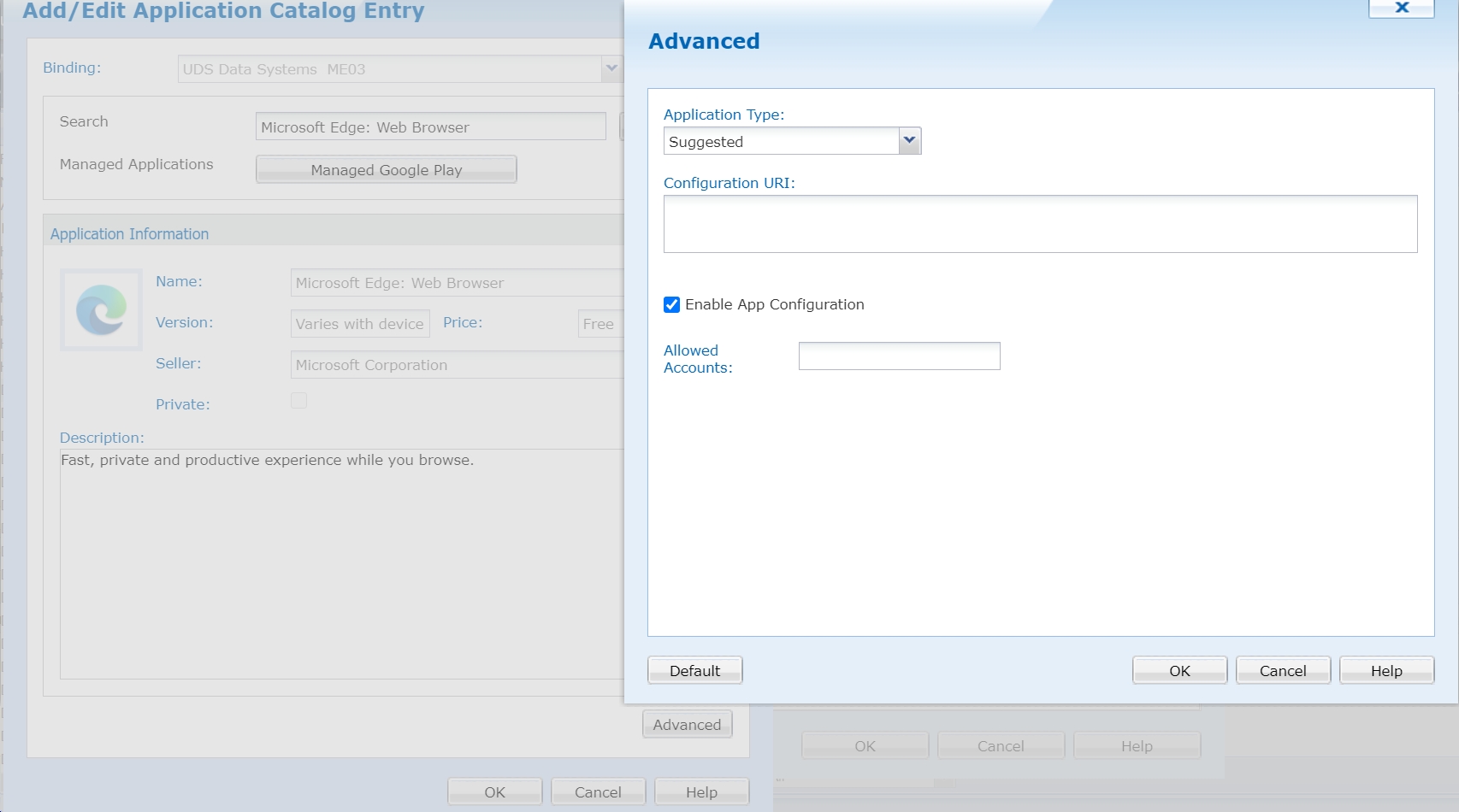 I'm trying to install the Microsoft Edge app on my devices with some settings in the managed app config part.