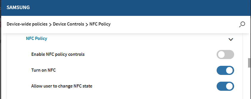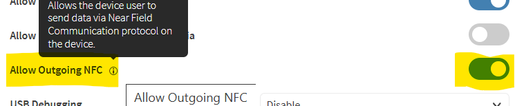 Almost all of the device functionalities can be adjusted, but I cant find anything regarding NFC.