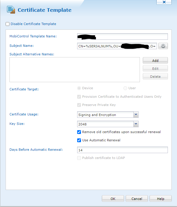We use the SCEP device template with serialnumber as identifier. See attached: screen 1.
