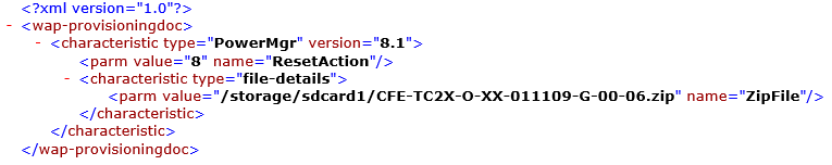 sendintent -b "intent:#Intent;action=com.symbol.intent.action.UPDATE_PACKAGE;S.file=/sdcard/Downgrade.zip;end"