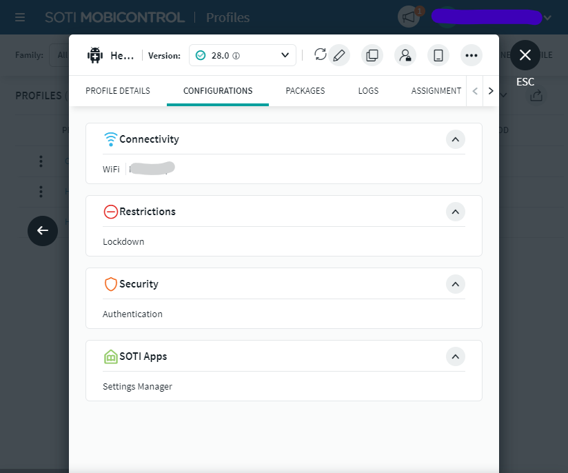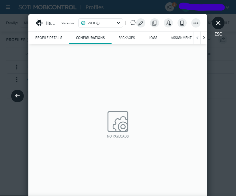This works BUT we cannot set the Profile Configurations and they do not seem to get copied like when we do this manually in MobiControl WebConsole by doing Edit on a Profile. - Assign the Profile to a Device Group to push out the latest version of the app