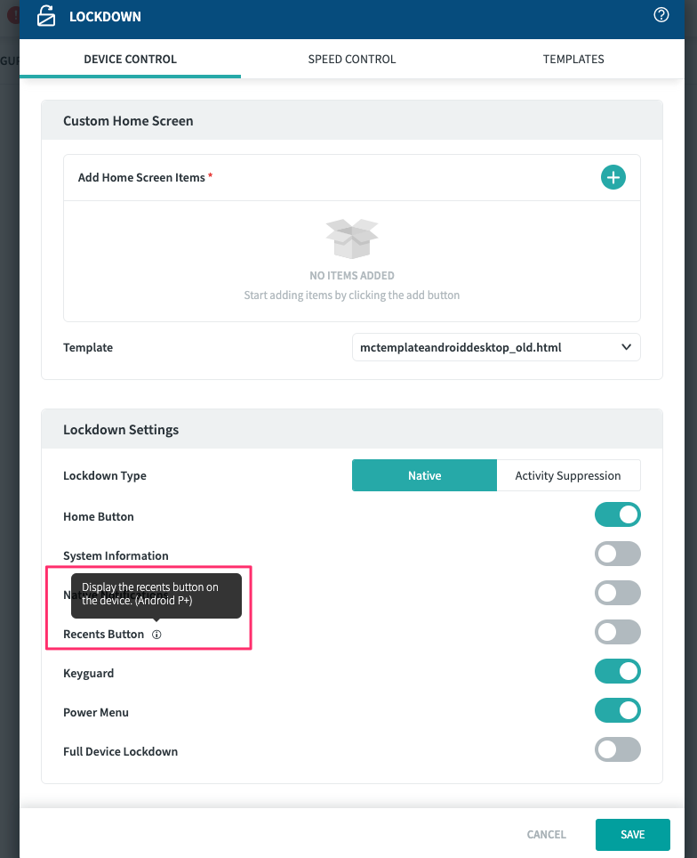 while in lockdown this one only shows the "back" button on the bottom of screen