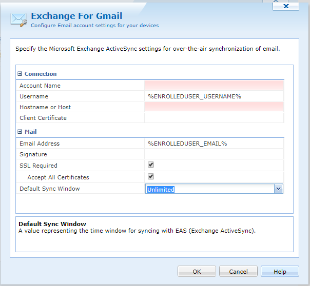 The default sync window is for the email retention time in the account.