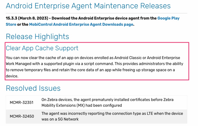 In fact, just like for Chrome and other popular browsers, if such a function is really needed, it is the app itself that should include GUI/api for the end-user to clear the cache data owned/created by the app, not any MDM solution nor the device platform owner Google.