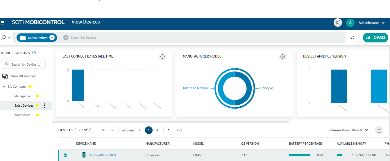 I connected my android plus devices to the SOTI Mobicontrol and my devices are sowing in the Mobicontroldashboard. I can do some simple actions like "Send a message", "Lock" on my devices using Mobicontrol.