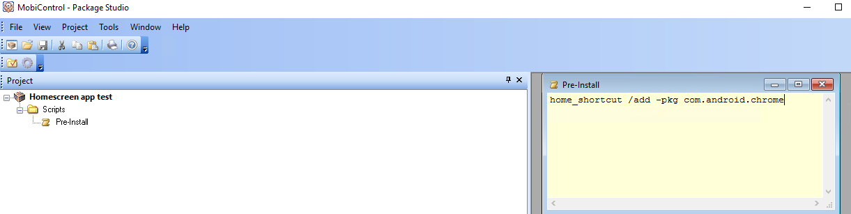 Thank you for your response, did you try sending this script home_shortcut /add -pkg com.android.chrome ?