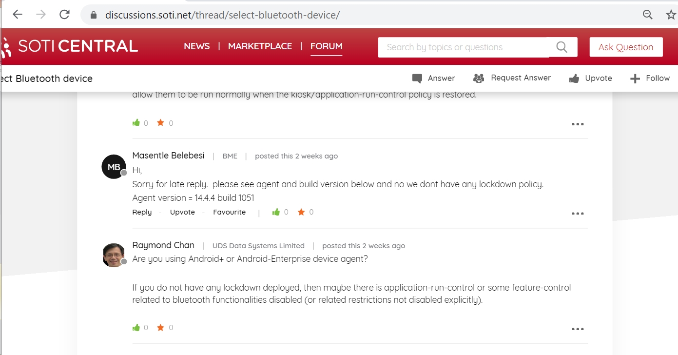 Have you deployed any lockdown/kiosk or application-run-control policy to your device? If so, disable them temporarily, perform whatever operation(s) you normally do to get the required bluetooth device picked on your device. Use MobiControl identify_activity or any other utility/methodology to identify the bundle-ID of the app activity/services invoked to perform the picking task. Then whitelist such app activity/service on your device to allow them to be run normally when the kiosk/application-run-control policy is restored.