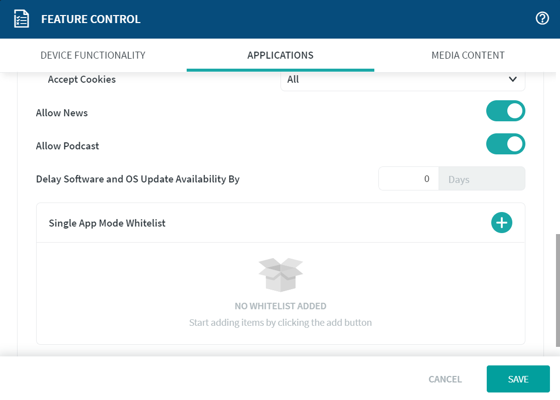 I have create 2 profiles for a iOS device. One with "Feature Control" and one with the "Single App Mode". I have add the app Google Drive there. Also in the "Future Control" under "Applications/Single App Mode Whitelist" has the Google Drive added. The configuration looks that the keyboard is disabled. The problem is, the user can't login in Google Drive, if the single app mode is enabled. But I don't found a setting point to enable this in the profiles.