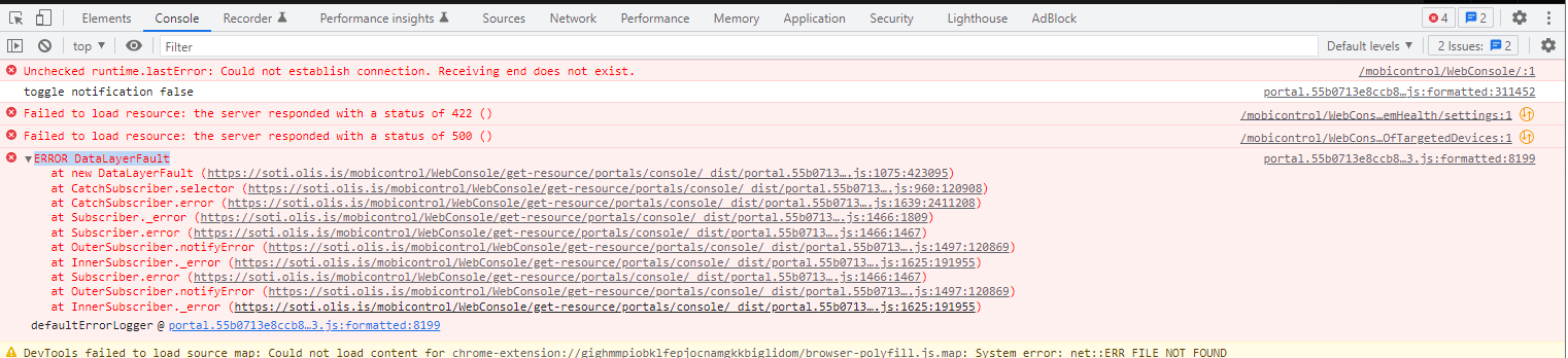 I'm getting the error below on a particular MobiControl instance, every time I try to add a new package to a profile. I.e. I can add the package itself, and I can select "Save and assign", but when I get the dialog which displays the folders, this error pops up and prevents me from actually assign the updated version of the profile to a folder.