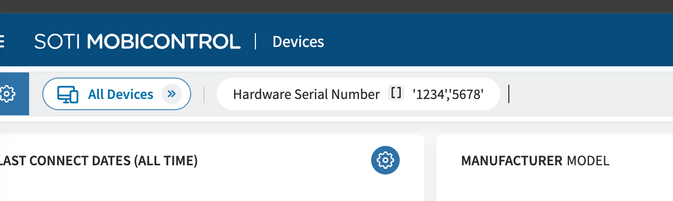 I need to see over 100 devices that are experiencing the same issue that i pulled from Samsung portal. I can't query this information in SOTI so i am leveraging the vendor to pull that information and then pull the devices up in soti. Instead of doing them one by one i want to pull them all up at once. see attached for example.