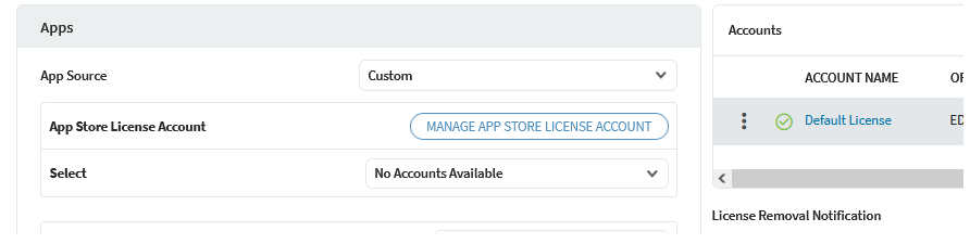 Please click on "Manage App Store License Account" -> Then click on more button (3-dots) next to the account name -> Click Test -> Please let me know the result of the test that you will see on the screen (screenshot of result would be beneficial).