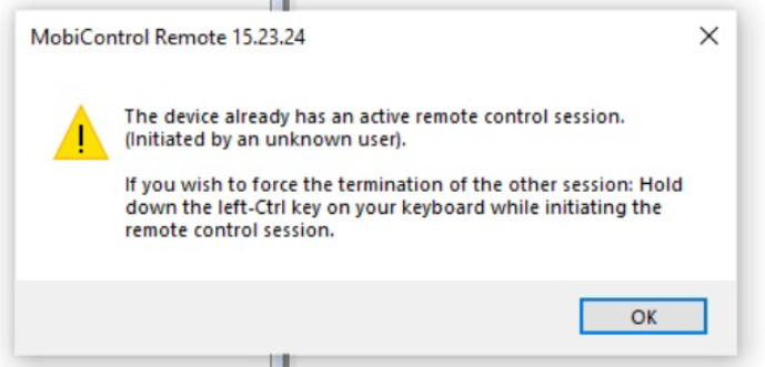 The message above told us to hold down CTRL key to terminate other session, but they method doesn't solve the issue. Most of the time i just restart the RC session until the RC started.