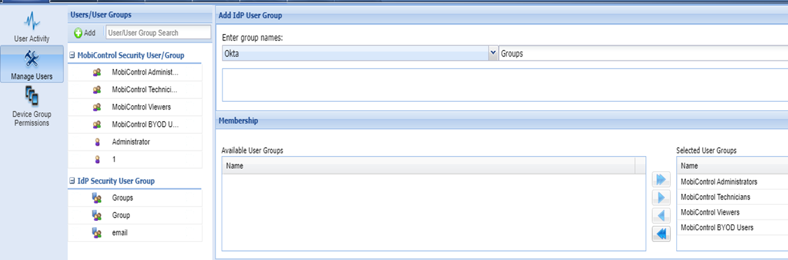 Thank you for your post, you can integrate OKTA in MobiControl,