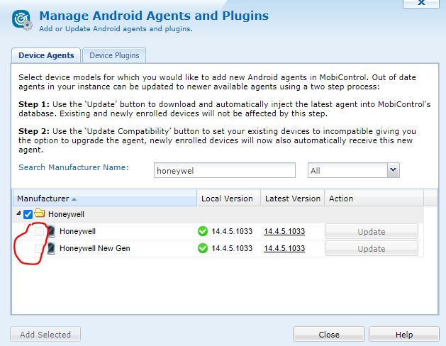 Trying to upgrade Mobicontrol agent for Honeywell CK75 to the latest version 14.4.5.1033 but not succeeded through the button Upgrade Agent