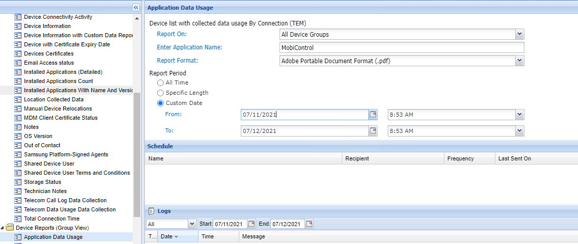 3. Once data collection is done , to grab data usage , we can go to Reports >Device reports(group view) >Application data usage report under android plus tab and grab report by mentioning application name(screenshot is attached)
