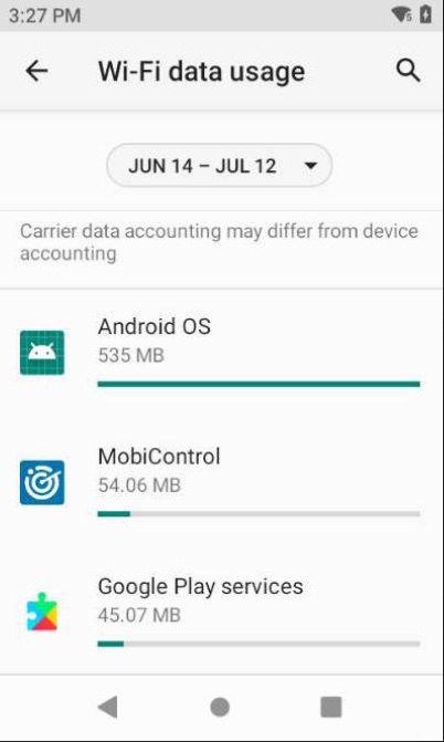 1. Make sure your device has data usage access permission enabled for Mobicontrol which you usually can be provided during enrollment on Mobicontrol 15 series onwards