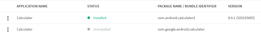 The kiosk profile is setup using com.google.android.calculator so any phone using the other one is not finding the app on the kiosk screen and is giving the error "package not found." The app in the Google Play Store only shows installed if the first package name is used, and when I try installing it when it is named the other way, I get an error.