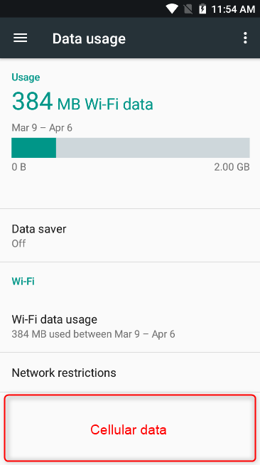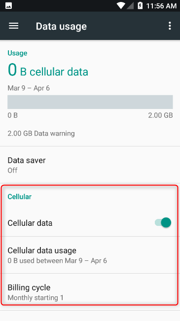When devices are configured for the first time (or after a factory reset) AND without a SIM card inserted, the "Cellular" block is not displayed in the "Data usage" settings.